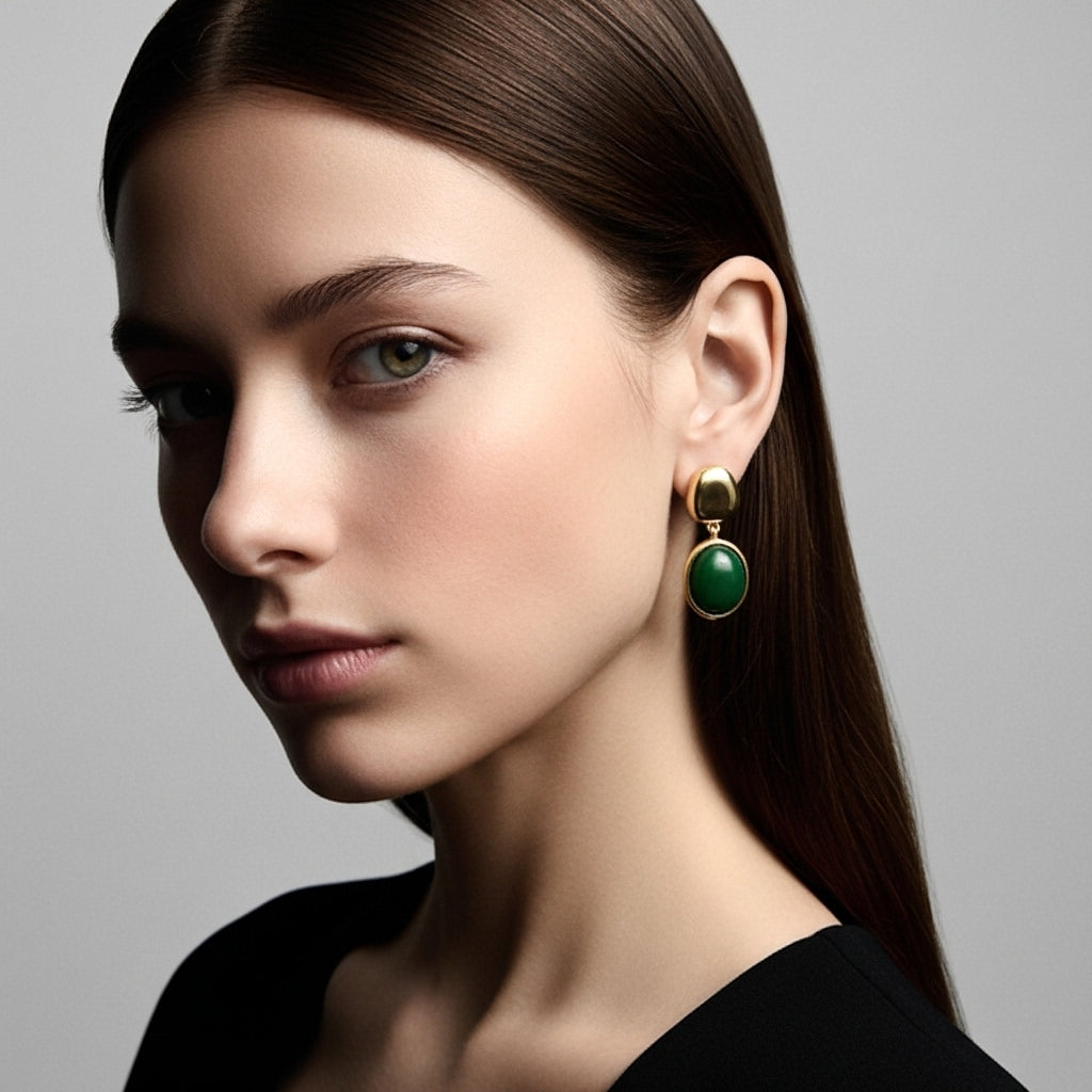 Giada Küpe, yeşimin huzurunu ve doğallığını modern bir tasarımla buluşturuyor. Yumuşak hatlı altın çerçeveye yerleştirilen derin yeşil taş, zamansız bir zarafet yansıtırken doğal enerjiyi de hissettirir. Gündüz şıklığında sofistike bir dokunuş, gece kombinlerinde ise güçlü bir vurgu yaratır. Minimal ve dikkat çekici tasarımı sayesinde hem tek başına hem de farklı küpelerle kombinleyerek kişisel bir stil ifadesi oluşturabilirsiniz.