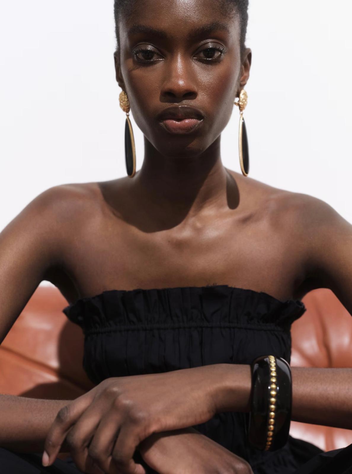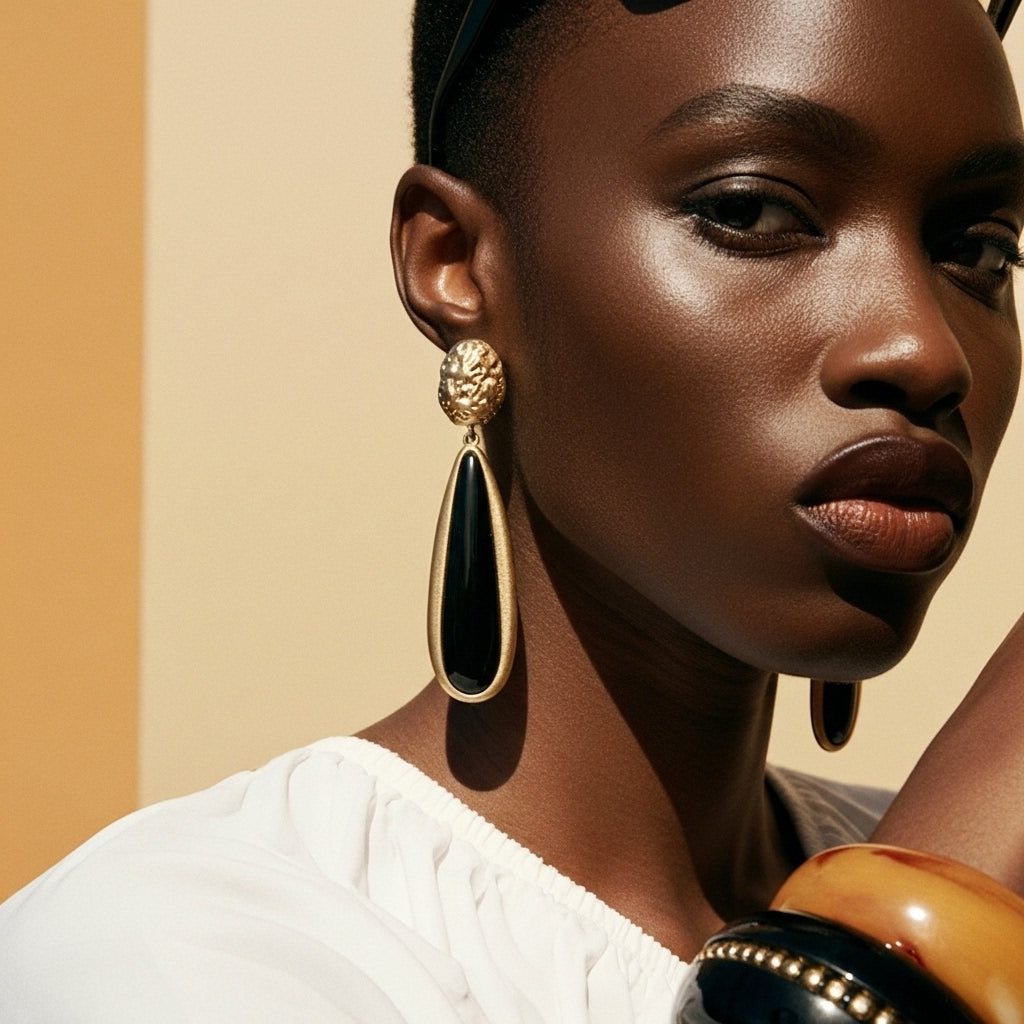Obscura Küpe, klasik zarafeti modern bir dokunuşla buluşturan iddialı bir tasarımdır. Parlak altın çerçevesiyle çevrelenen koyu siyah damla formlu taş, gecenin gizemini ve derinliğini yansıtır. Minimalist formu sayesinde gündüzden geceye, her stile uyum sağlar ve sofistike bir görünüm kazandırır. Özel davetlerde ya da günlük şıklıkta rahatlıkla tercih edebileceğin bu tasarım, güçlü bir duruş ve karakterli bir şıklık arayanlar için ideal.