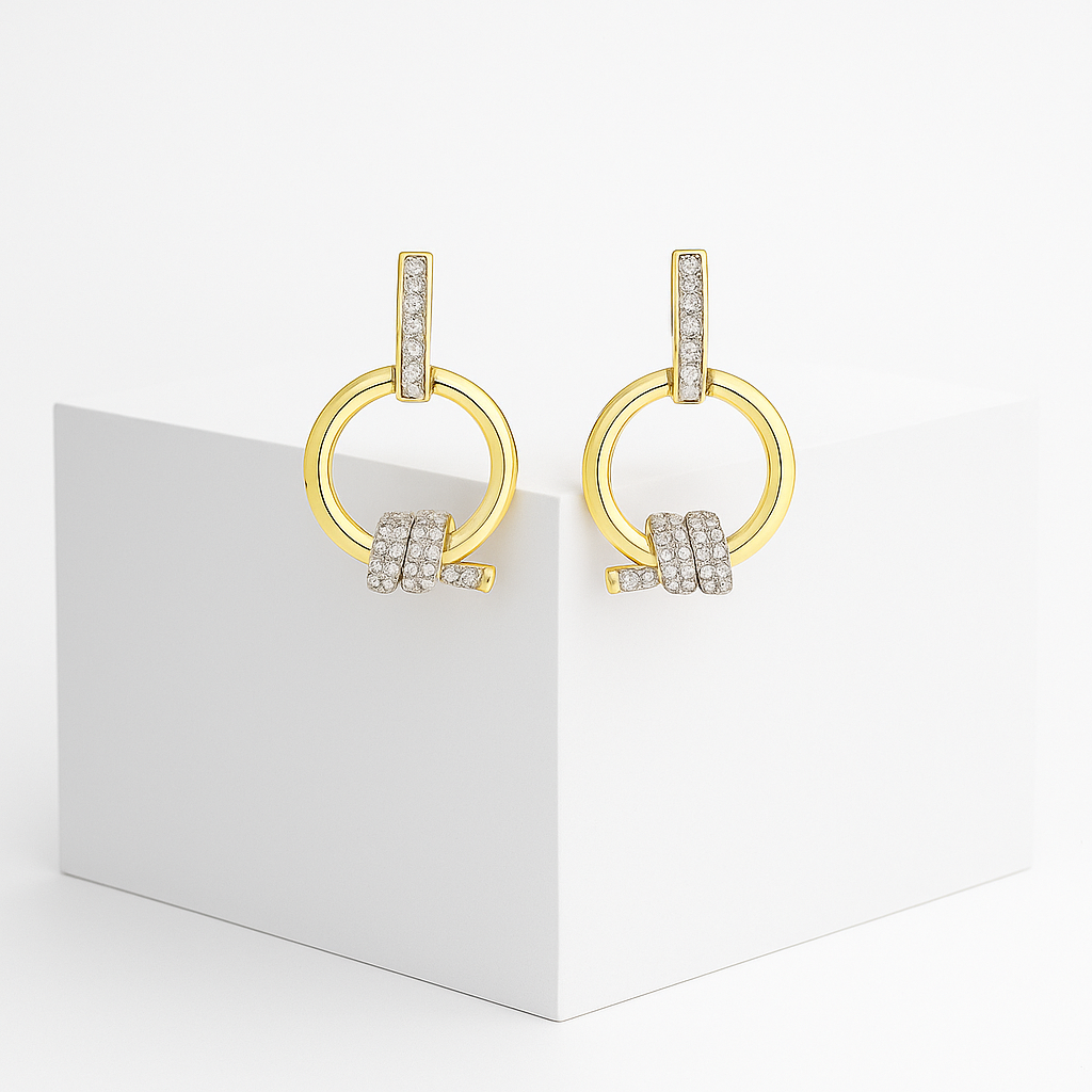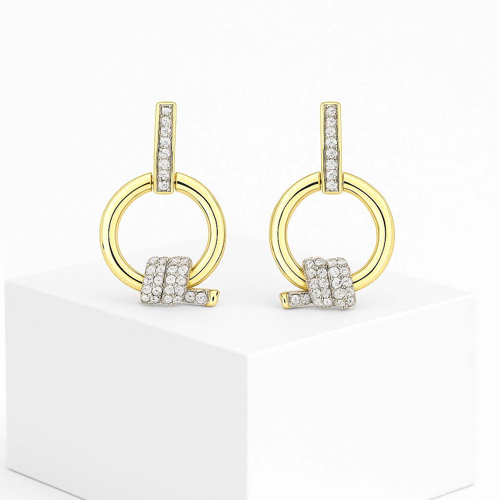 Altın halka formu; sonsuzluğu ve sürekliliği simgelerken, pırlanta taşlarla bezeli düğüm detayı her şeyin merkezinde duran bir bağlılığı temsil eder. Bu tasarım, yalnızca göz alıcı bir aksesuar değil; taşıyana anlam yükleyen bir semboldür.
