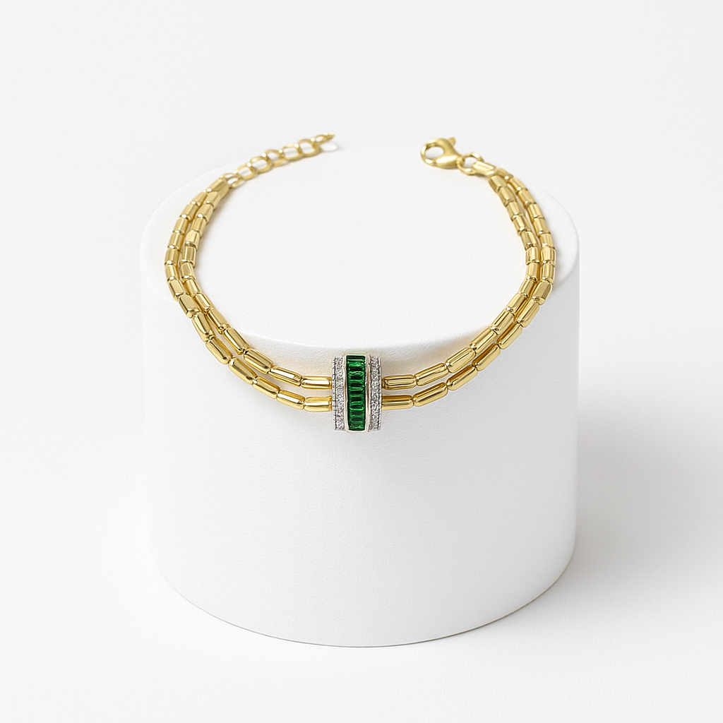 Her anınıza sofistike bir dokunuş katmak için tasarlanan Scarlet Soirée Bileklik, Aven & Laurel kadınının eşsiz stilini ve zarafetini yansıtıyor. Göz alıcı altın tonlarındaki çoklu zincirlerin kusursuz akışıyla öne çıkan bu parça, merkezinde yer alan derin ve büyüleyici "scarlet" kırmızısı taşla tutkulu bir ifade kazanıyor. Bu zarif taş, etrafını saran pırıltılı minik taşlarla adeta bir yıldız gibi parlayarak, her bilekte dikkat çekici bir ışıltı sunuyor.