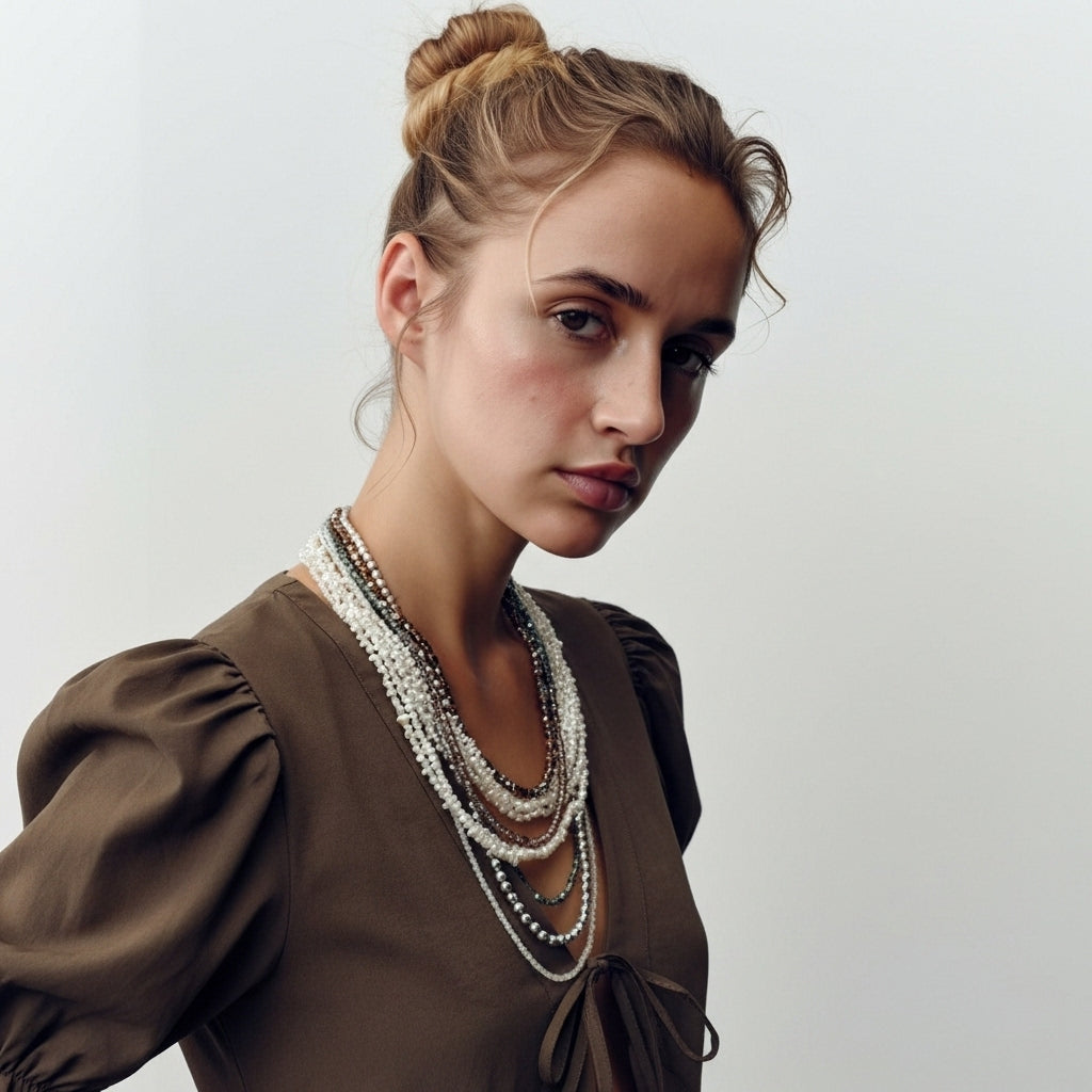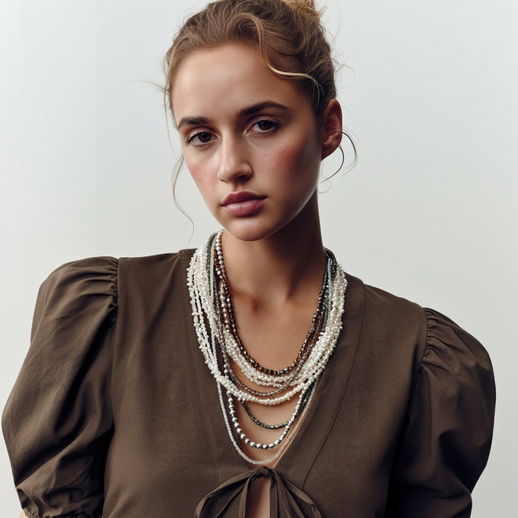 Katmanlı tasarımıyla bohem şıklığı lüks bir yorumla buluşturan Sérénité Multi Kolye, farklı boy ve renkte dizilmiş kristal boncuklarıyla hareketli bir görünüm yaratır. İpeksi dokulu bağcık detayı, boynunuza zarifçe oturur ve gün boyu konfor sunar. Siyah, gümüş ve inci tonlarının bir araya geldiği bu tasarım; ister basic bir gömlekle minimal bir duruş, ister akşam elbisesiyle iddialı bir stil yaratmanıza olanak tanır. Katmanların yarattığı doğal akış, kolyeye derinlik ve özgün bir karakter kazandırır.