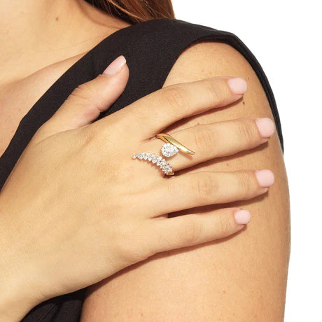 Aurora Tear Yüzük, zarafetin ve ışıltının eşsiz bir yansımasıdır. Damla formundaki pırlanta detay, altın halkayla birleşerek gökyüzünün aurora parıltılarını andıran büyüleyici bir etki yaratır. Modern tasarımıyla hem günlük şıklığa hem de özel anlara sofistike bir dokunuş katar.
