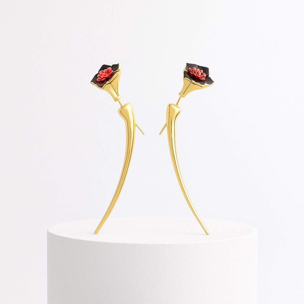 Colonnade Küpe, antik sütun sıralarının ritmini Art Deco’nun keskin geometrisiyle buluşturur. Mat oniks çerçeve, ortadaki zümrüt pavé yüzeyi mimari bir cephe gibi yukarı çekerek bakışları toplar; dikey proporsiyon yüz hatlarını inceltir, hafif gövde uzun saatler boyunca konforu korur. Yeşilin dramatik ışıltısı siyahın kararlı derinliğiyle kontrast oluşturur ve tek dokunuşla güçlü bir tavır sergiler. Sade siyah bir elbiseyi anında üst segmente taşıyan bu tasarım, katmanlı altın kolyelerle eşleştiğinde modern bir zenginlik duygusu yaratır. Colonnade—mimari bir imza, şehir ışıklarının arasında kaybolmayan net bir vurgu.