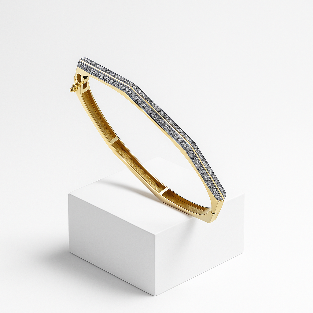 Cornerstone Kelepçe, keskin köşeli geometrik formuyla modern mimarinin zarafetini bileğinize taşıyan çarpıcı bir tasarım. Sekizgen silueti, pırlanta süslemelerle harmanlanarak her açıdan yakaladığı ışıkla sofistike bir ışıltı sunar. İnce ve akıcı hatlar, güçlü bir görsel etki yaratırken sadelikten ödün vermeyen duruşu sayesinde hem günlük stilinizi hem de özel davetlerinizi anında yükseltir.