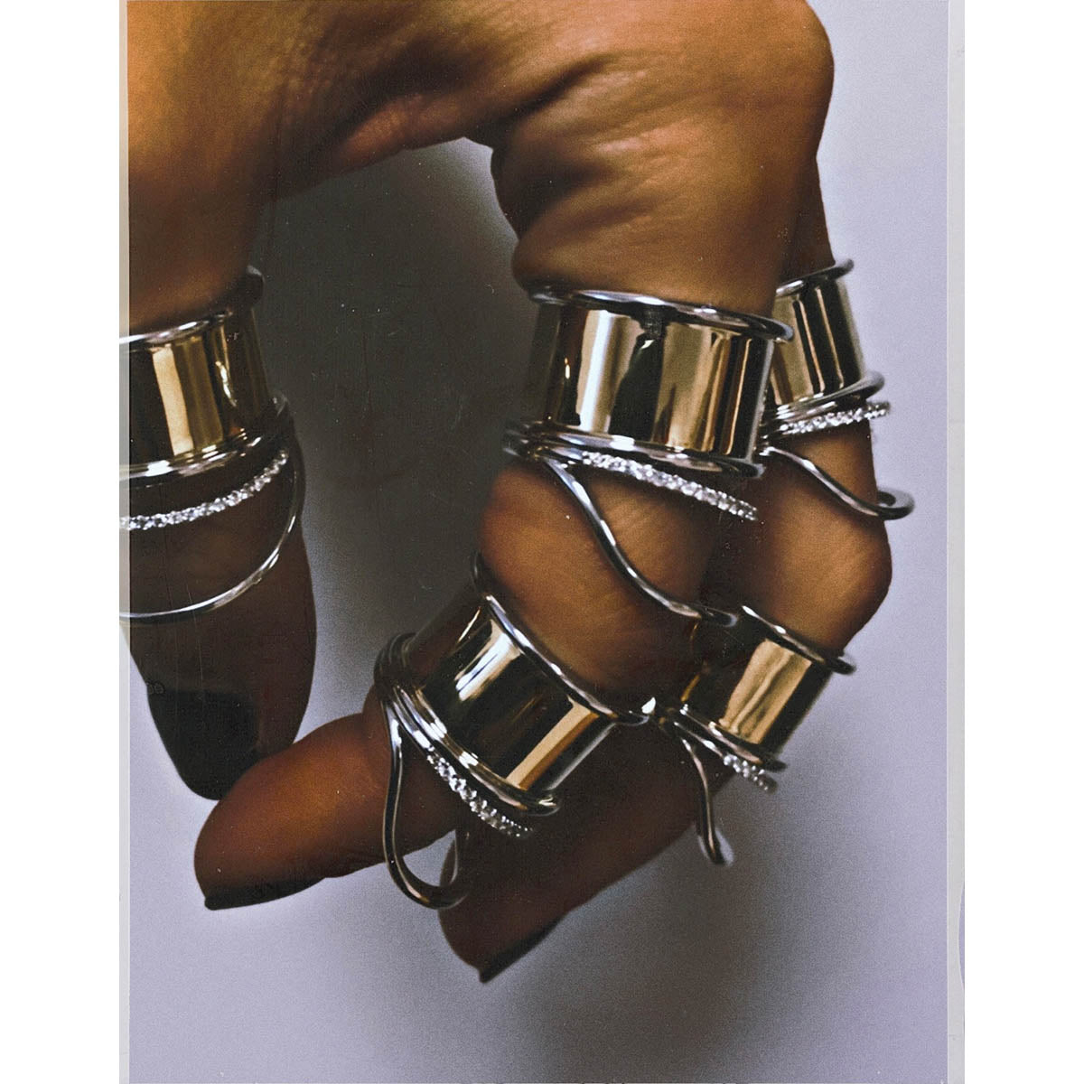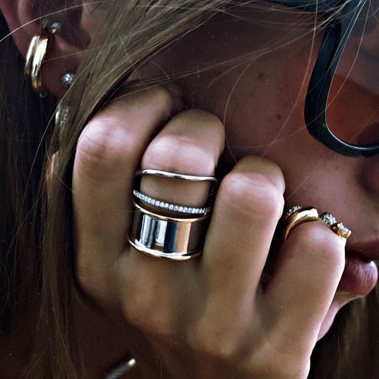 Gold ve silver tonlarının zarif uyumuyla tasarlanan bu yüzük, üst kısmındaki pırlanta ışıltılı kavis detayıyla modern ve sofistike bir görünüm sunar. Geniş bant yapısı güçlü bir duruş sergilerken, asimetrik formu tasarıma özgün bir karakter katar. Dazzle Loop Yüzük, hem günlük şıklıkta hem de özel davetlerde iddialı bir stil tamamlayıcısıdır.