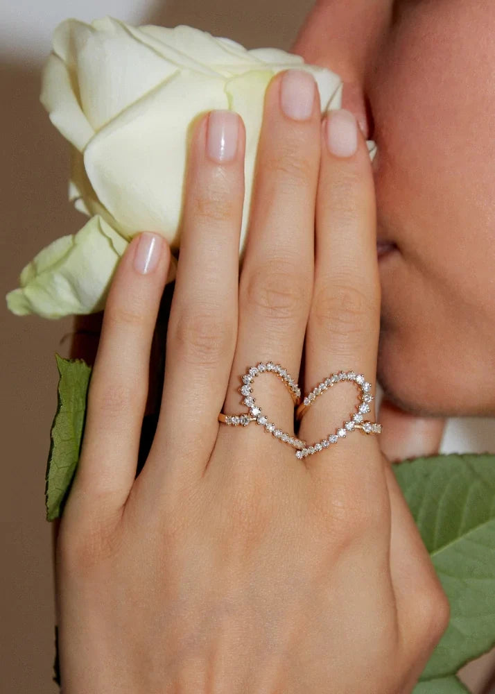 Sonsuz aşkın simgesi olan “Infinity Amour Yüzük”, iki yüzüğün birleşerek kalp formunu oluşturduğu zarif bir tasarıma sahiptir. Parlak taşlarla süslenmiş kıvrımları, her ışıkta büyüleyici bir ışıltı yaratırken modern ve romantik bir duruş sunar. Hem günlük şıklığın zarif tamamlayıcısı hem de özel anların vazgeçilmez imza parçasıdır.