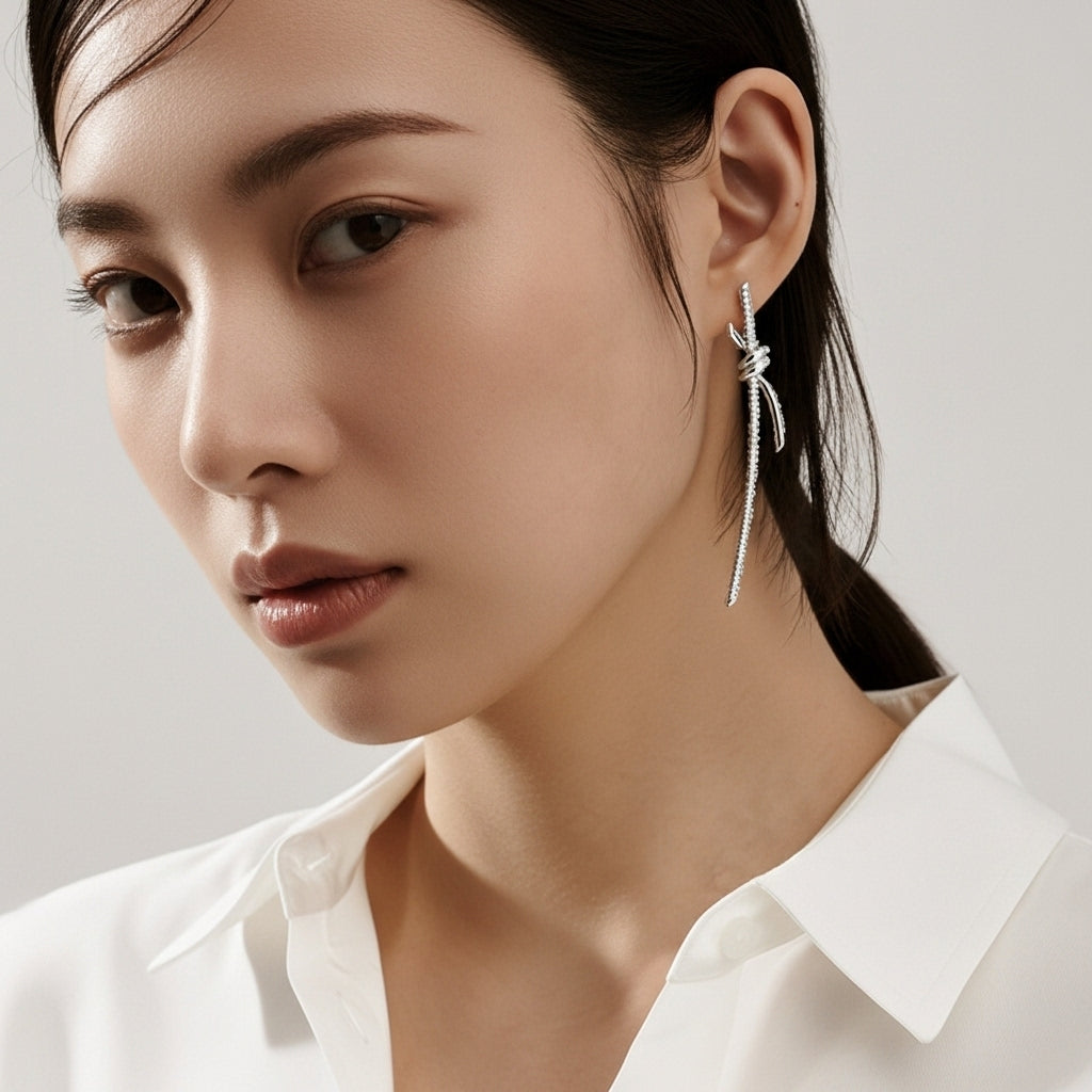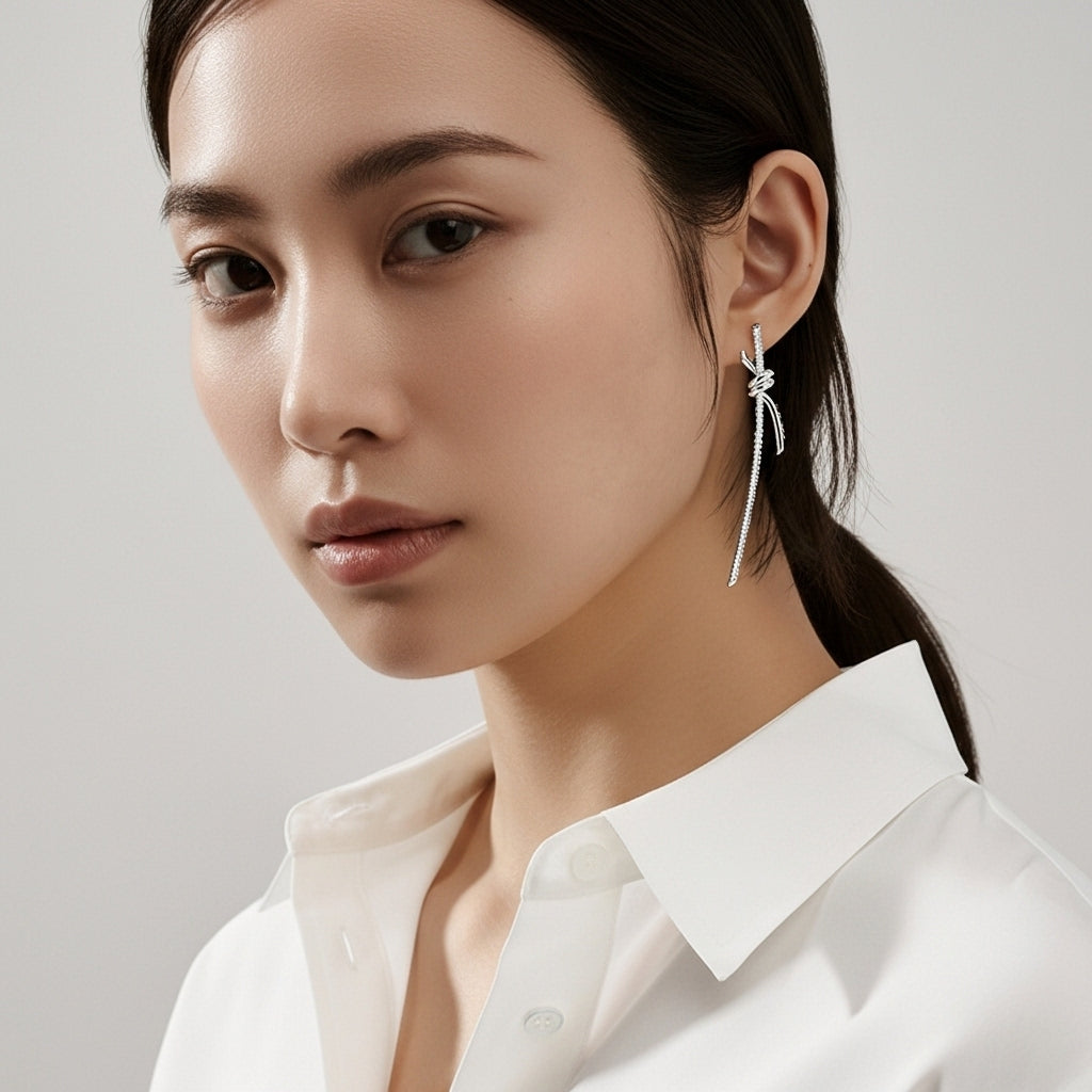 Zarif çizgileriyle öne çıkan Infinity Ties Küpe, sonsuzluğu simgeleyen düğüm detayı ve taşlarla işlenmiş ince formuyla modern bir zarafet sunar. Minimal tasarımındaki güçlü anlam, hem günlük stilinize hem de özel davetlerinize sofistike bir dokunuş katar. Zamansız şıklığıyla koleksiyonların vazgeçilmez parçasıdır.
