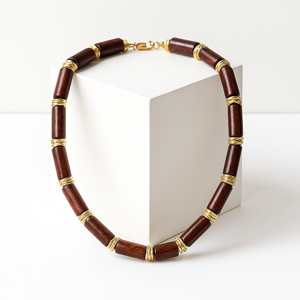 Doğanın dokusunu boynunda taşıyanlara özel… Kav Woodline Kolye, derin kahve tonlu ahşap parçaları ve zarif altın detaylarıyla tasarlandı. Her bir parça, doğadan gelen sıcaklığı modern bir çizgiyle buluştururken; kolyenin bütünü güçlü, sade ve zamansız bir şıklık sunar.