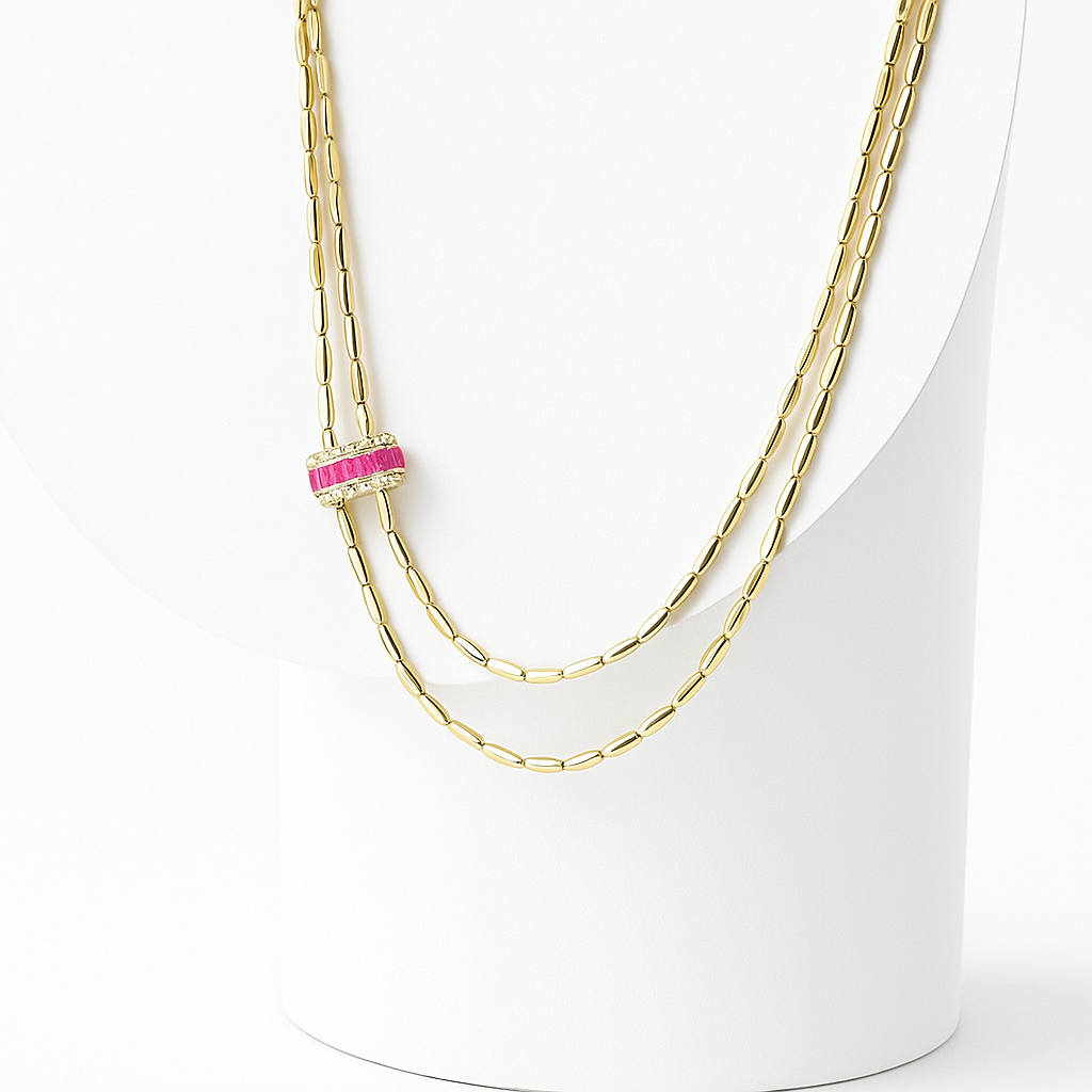 Altının sıcak ve göz alıcı tonları, boynunuzu zarifçe saran çoklu zincirleriyle modern bir siluet oluştururken, merkezdeki ışıltılı detay göz kamaştırıyor. Minik ve özenle yerleştirilmiş taşlar, ışığı her hareketinizde yakalayarak büyüleyici bir parıltı sunuyor. Lueur Precieuse Kolye, sadece bir aksesuar değil, aynı zamanda sizin değerinizi ve seçkin zevkinizi yansıtan bir mücevherdir.
