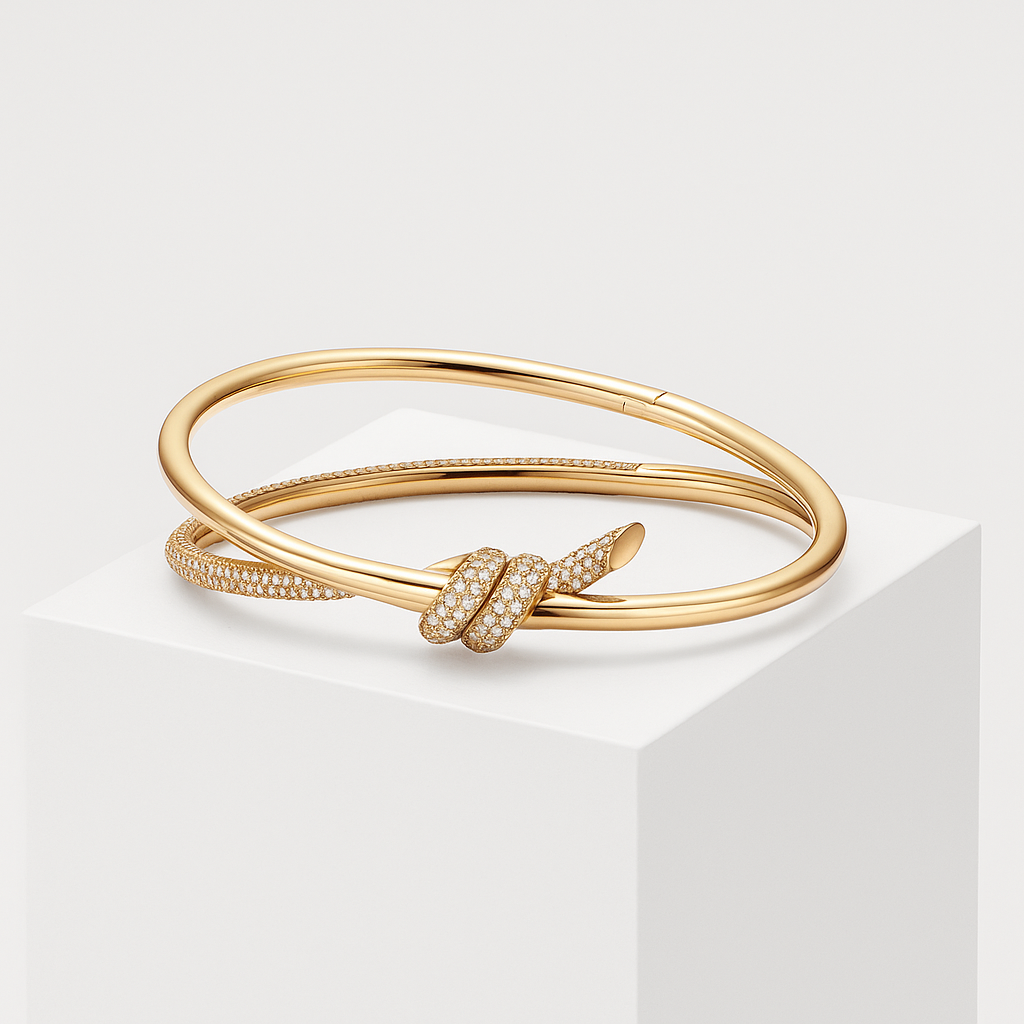 Zamansız bir zarafeti simgeleyen Lustrous Kelepçe, parlak altın yüzeyinin ince kıvrımlarında şıklığı ve bağlılığı yeniden tanımlar. Düğüm formu, sadeliğin içinde sembolik bir derinlik taşırken; pırlantaların sofistike ışıltısı her harekette sizi yansıtır.