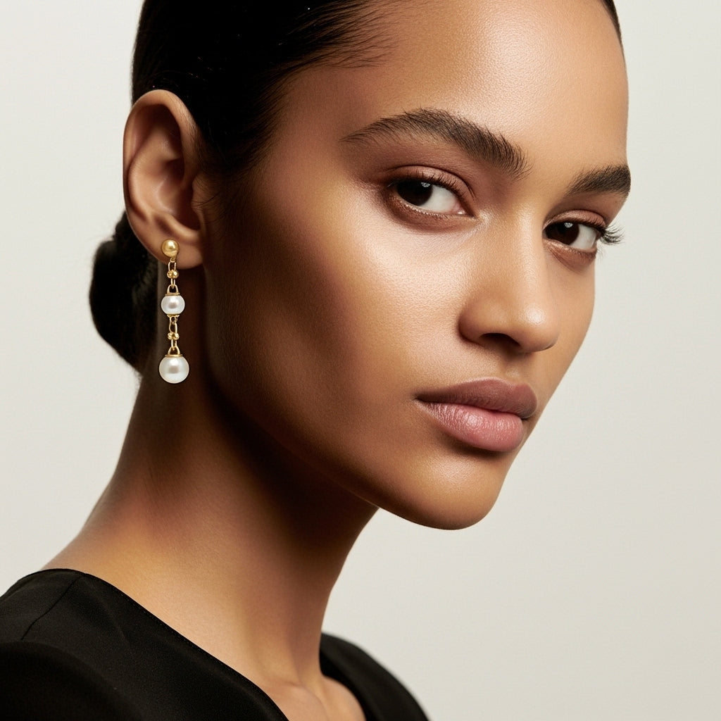 Gökyüzünün en parlak yıldız takımlarından ilham alan Lyra Pearl Küpe, modern zincir detaylarını zamansız incilerle buluşturuyor. Altın tonların sıcak ışıltısı, inci kürelerin zarif asaletiyle birleşerek güçlü bir kontrast yaratıyor. Günlük stilinize sofistike bir dokunuş katarken, gece davetlerinde de öne çıkan şık bir tamamlayıcı oluyor.