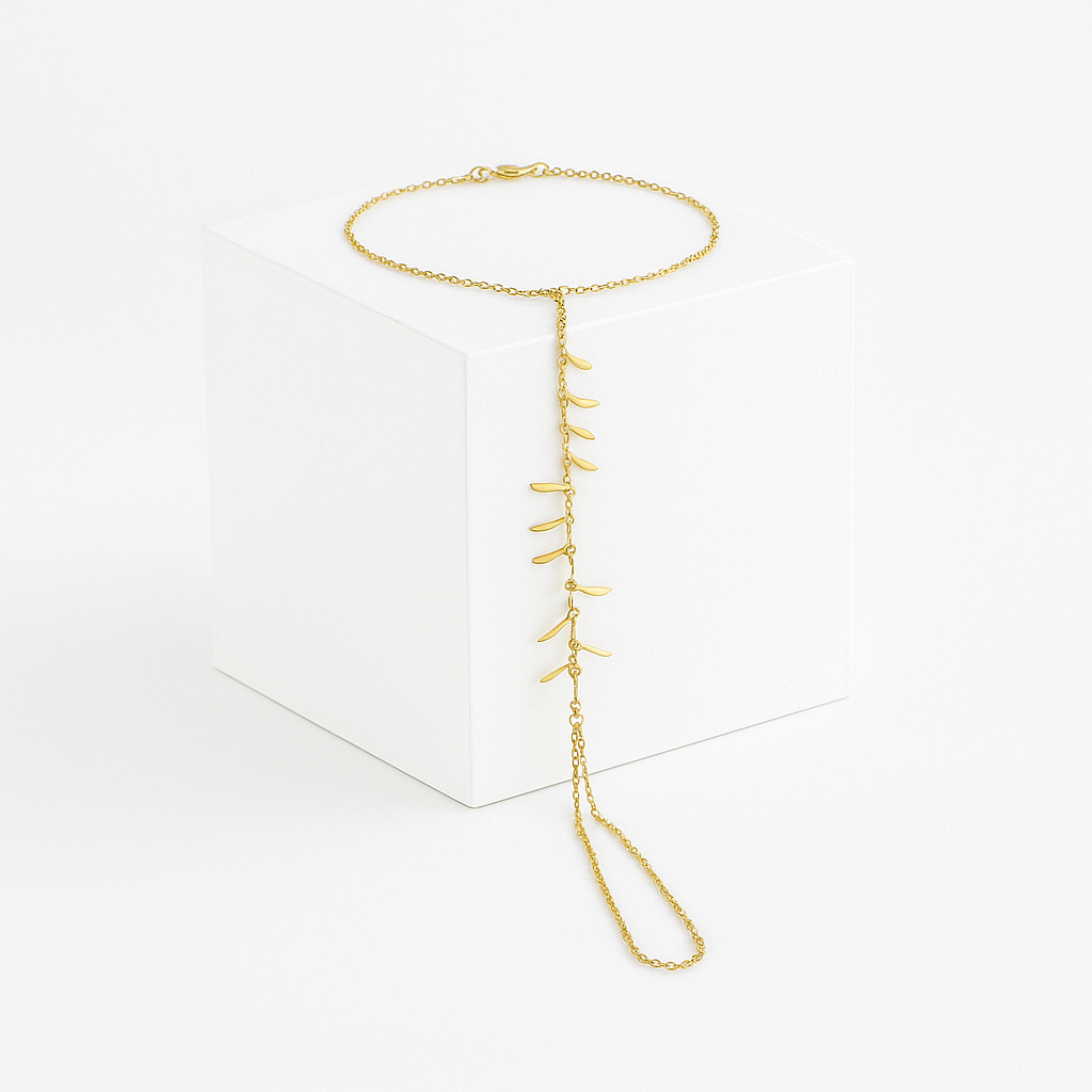 Orlaine Finesse Şahmeran, zarafeti el bileğinden parmak ucuna kadar uzatan heykelsi bir silüet sunar. İnce zincir halkaları, tıpkı rüzgârla salınan altın başaklar gibi dizilmiş mini sivri formlarla buluşur; her mini parça ışığı farklı açıdan yakalayarak gün boyu narin bir ışıltı yaratır. Bileklik ve yüzük halkası, seçkin bir keskinlik yerine bilinçli bir akışkanlık hedefler; bu sayede takıyı taktığınızda takı sizinle birlikte hareket eder, özgün bir uyum hissi verir. Şehirli bir stil kodu taşır: minimal duruşu sayesinde hem gündüz sokak stilinde hem de gece davetlerinde tek başına iddia yaratır. Orlaine Finesse, gösterişe ihtiyaç duymadan inceliğin gücünü kanıtlayan çağdaş bir mücevher manifestosudur.
