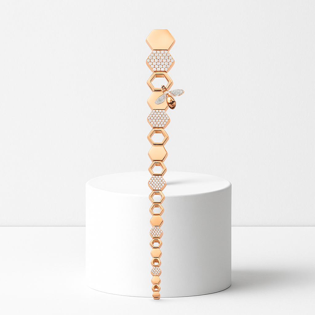 Royal Honeycomb Studs, arı kovanının kutsal geometrisini kraliyet armalarına yakışır bir asaletle kulaklarınızda mühürler; altın dokunun bal peteği hücreleri kusursuz altıgenler halinde ışığı yakalarken, merkezde yükselen zarif kraliçe arı motifi bu ışıltılı zemin üzerinde tahtına oturur ve her kanat çırpışında pavé taşların kıvılcımlarıyla gündelik bir anı bile törene dönüştürür. Minimal boyutuna rağmen milimetrik oyukları ve el işçiliğiyle yerleştirilen mikro elmasları sayesinde ışığı petek duvarlarının içinde yansıtarak üç boyutlu bir parıltı yaratır; böylece saçlarınızı savurduğunuz sırada bile gözler orada, kulak memenizdeki ihtişam tapınağında kilitlenir. Hafif gövdesi gün boyu konfor sunarken nikel içermeyen sapı hassas ciltleri korur; ama bu incelikli ergonomi, küpenin cüretkâr karakterini sönükleştirmez—aksine, beyaz pamuklu gömlekle sabah toplantısında sofistike bir imza atar, geceyi derin yakalı siyah kadife elbiseyle kapatırken bal peteğinden süzülen altın damlaları gibi büyüleyici bir final yapar. Royal Honeycomb Studs, güç ve zarafetin kusursuz karışımını tek bakışta ilan eder: taçsız kraliçelere, kendi kovanının kurallarını koyan kadınlara adanmış, asaletin bal tadında bir manifestosu.