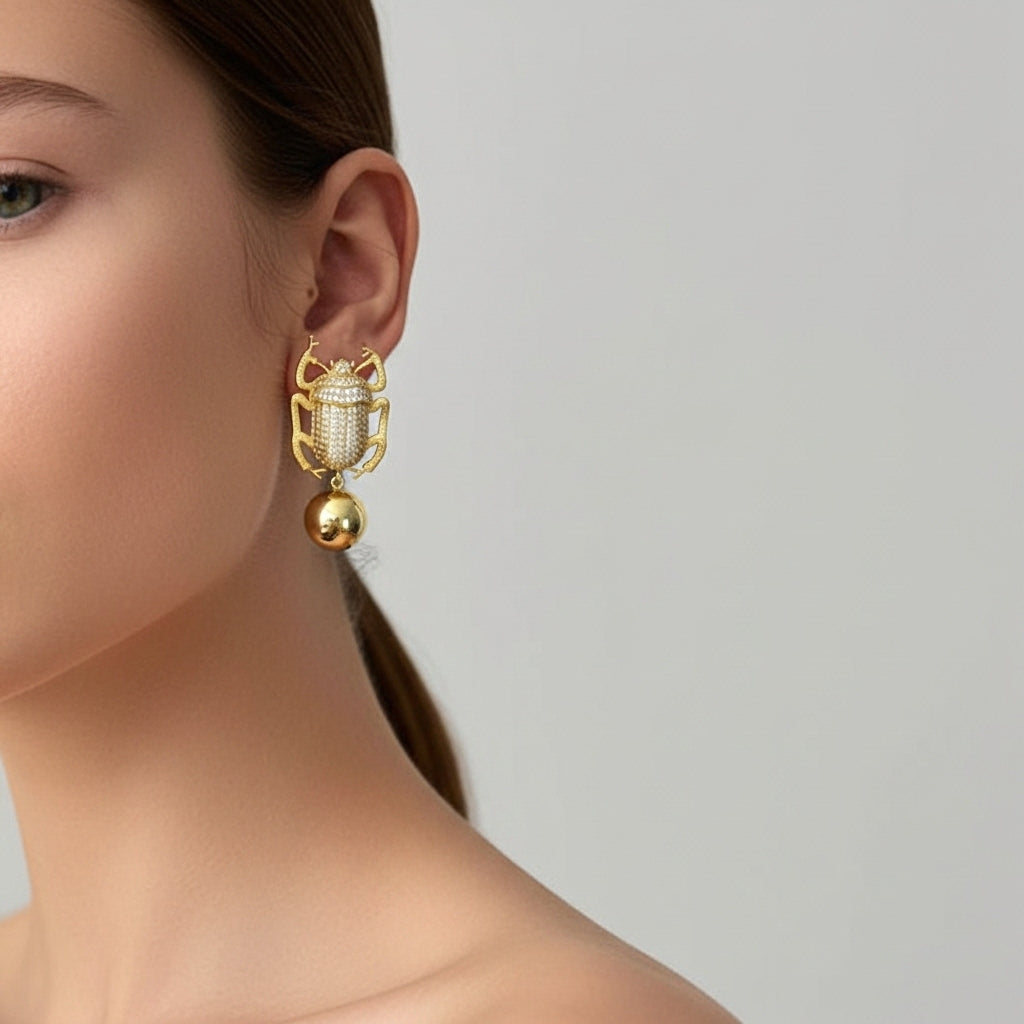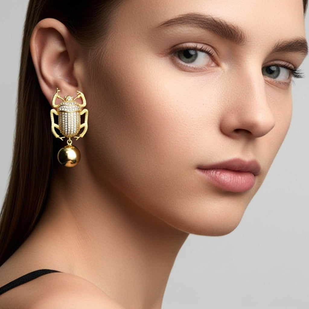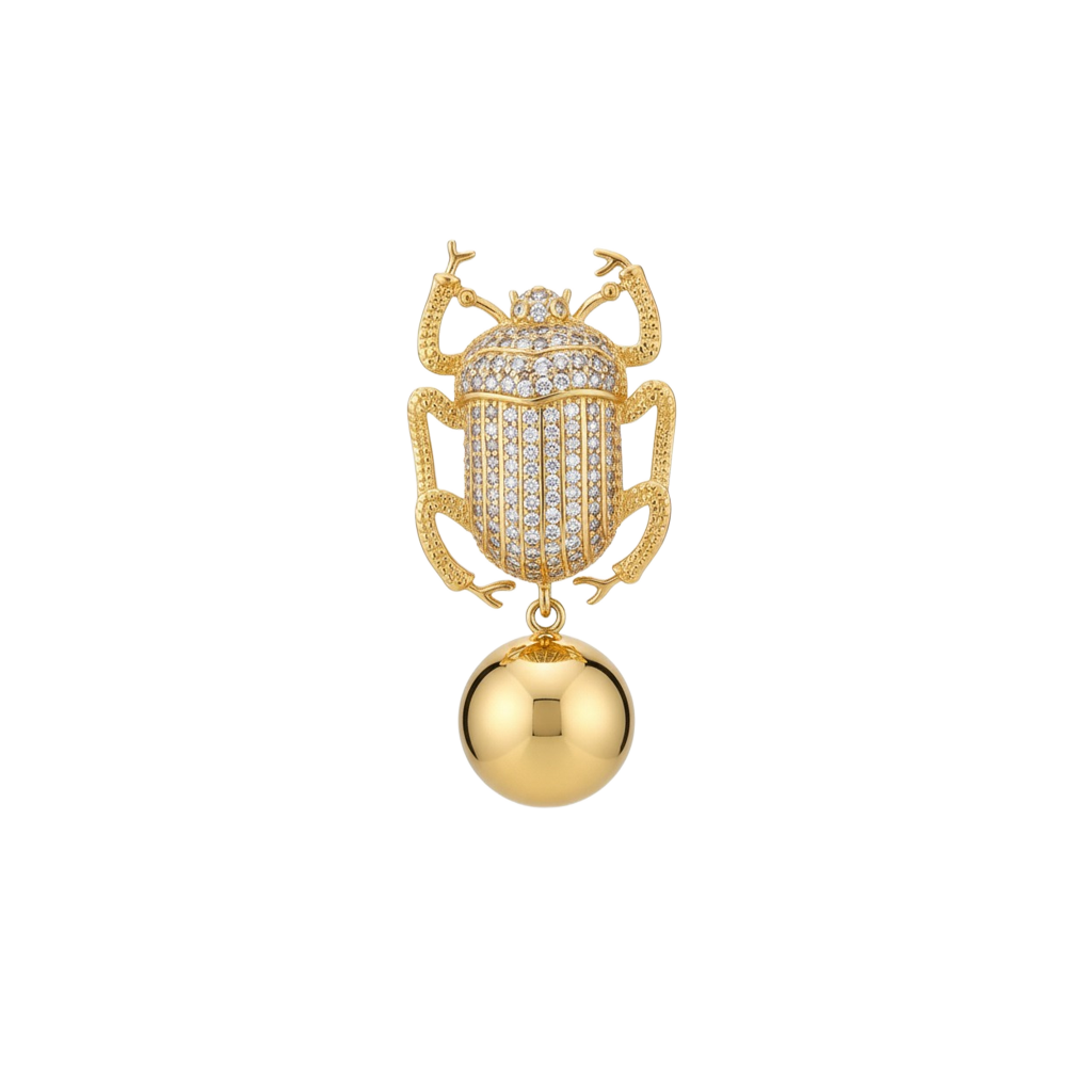 Eski Mısır’ın kutsal sembolü olan skarabe böceğinden ilham alınarak tasarlanan Scarabée Doré Küpe, koruyucu ve dönüştürücü gücüyle dikkat çekiyor. Parıltılı taşlarla süslenmiş gövdesi, altın tonlu yuvarlak detayla birleşerek mistik bir ihtişam sunuyor. Cesur, anlam yüklü ve göz alıcı bir tasarım arayanlar için benzersiz bir seçimdir.
