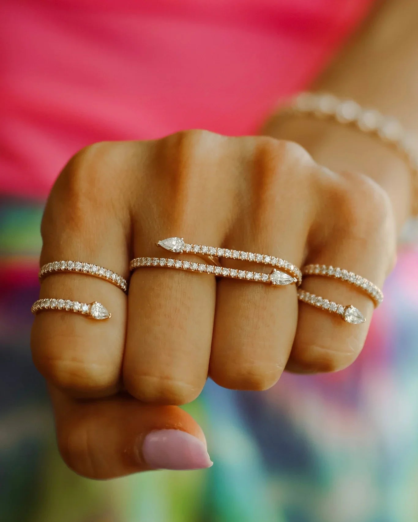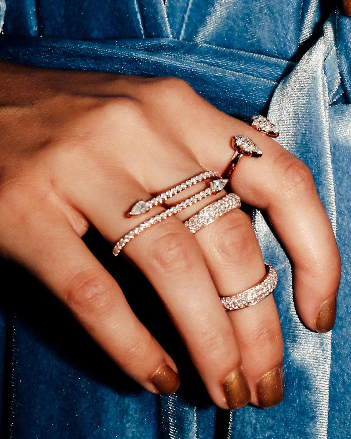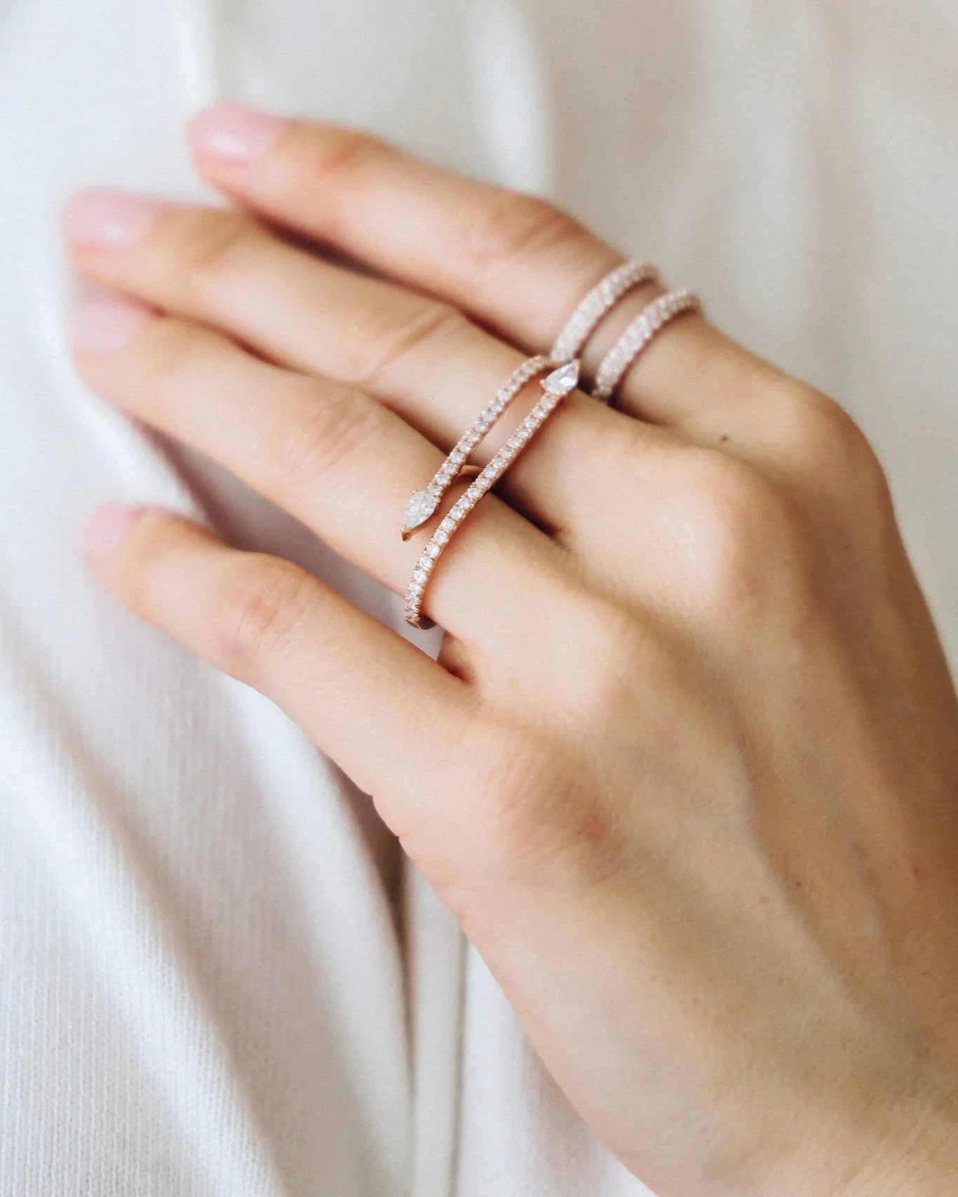 Adını meleksi zarafet ve saf ışığı simgeleyen Seraphine’den alan bu yüzük, uçtan uca dizilmiş ışıltılı taşları ve damla kesim detaylarıyla büyüleyici bir ihtişam sunar. İnce yapısı ve zarif kıvrımı, parmağınızda göksel bir parıltı yaratırken, her hareketinizde sofistike bir ışık oyunu sergiler. Hem günlük stilinizi yüceltir hem de özel anlarda zamansız bir imza parçasına dönüşür.