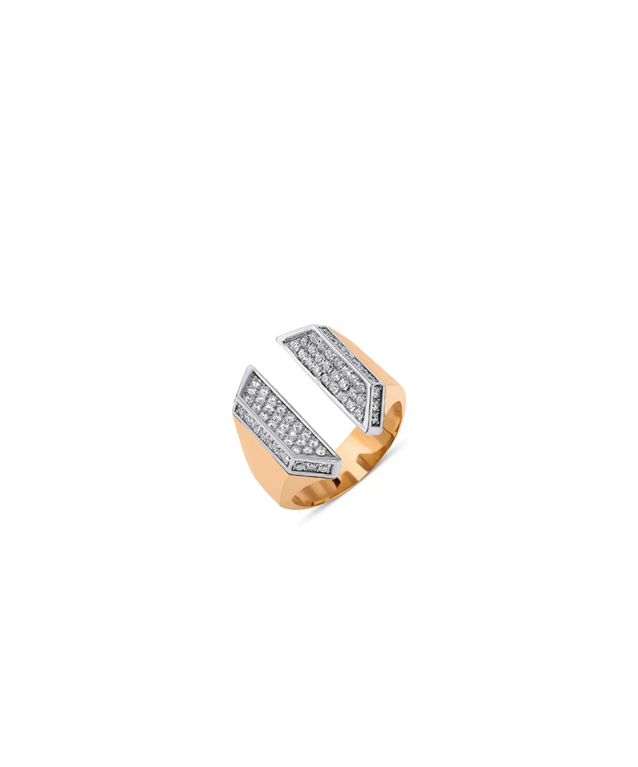 Splitline, gücünü formundaki boşluktan alır. İki keskin yüzey arasında bırakılan açık alan, yalnızca bir tasarım tercihi değil; bir seçim anı, bir yol ayrımıdır. Gold rengi ve pırlantalarla kaplı geometrik yüzeyler ışığı en net şekilde yansıtırken, altın gövde bu ışığı çerçeveleyen bir yapı gibi durur.