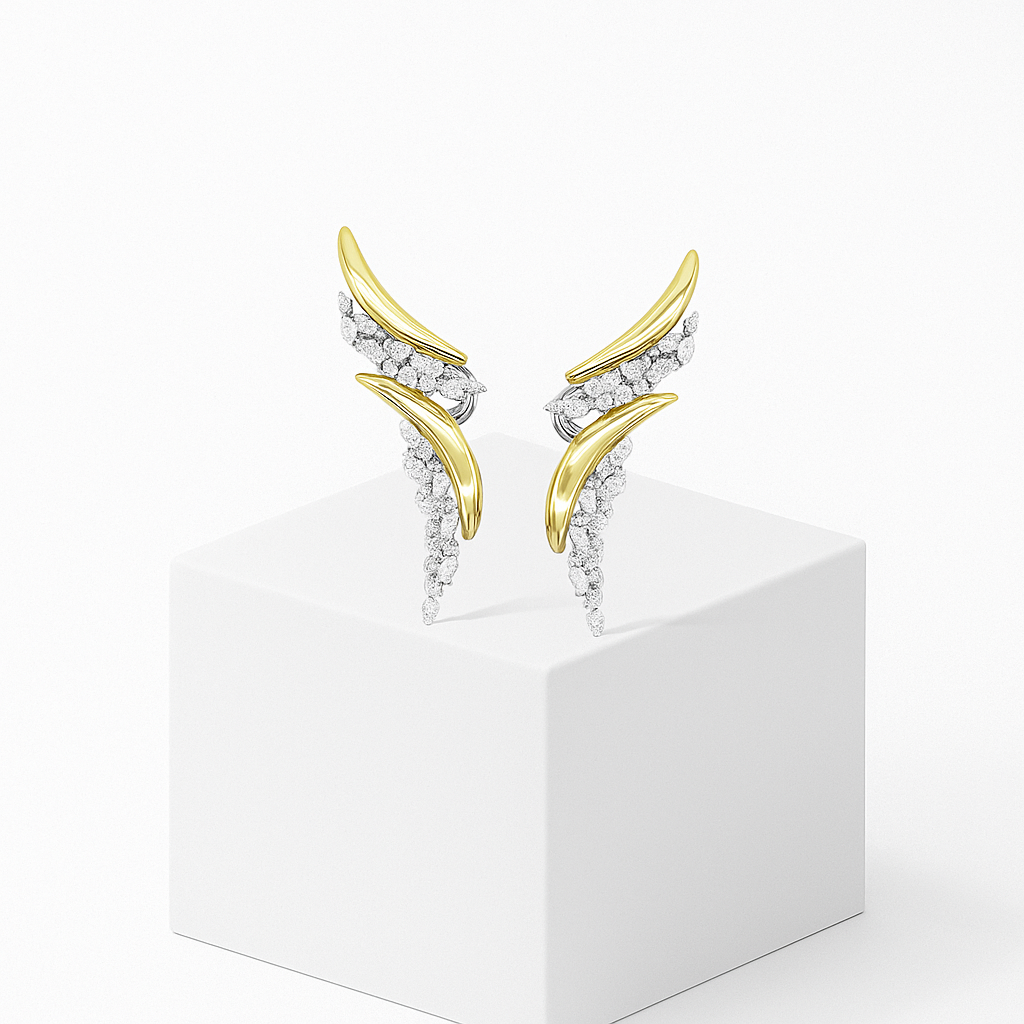 Kulak memesinden yukarı tırmanan tasarım, hafif iç kavisle sabitlenir; gün boyu yerinden oynamaz, ancak varlığını ağırlığıyla asla hissettirmez. Beyaz gömleğe sofistike bir canlılık, gece elbisesine ise sahne ışığının ayırt edemeyeceği bir parıltı derinliği katar.