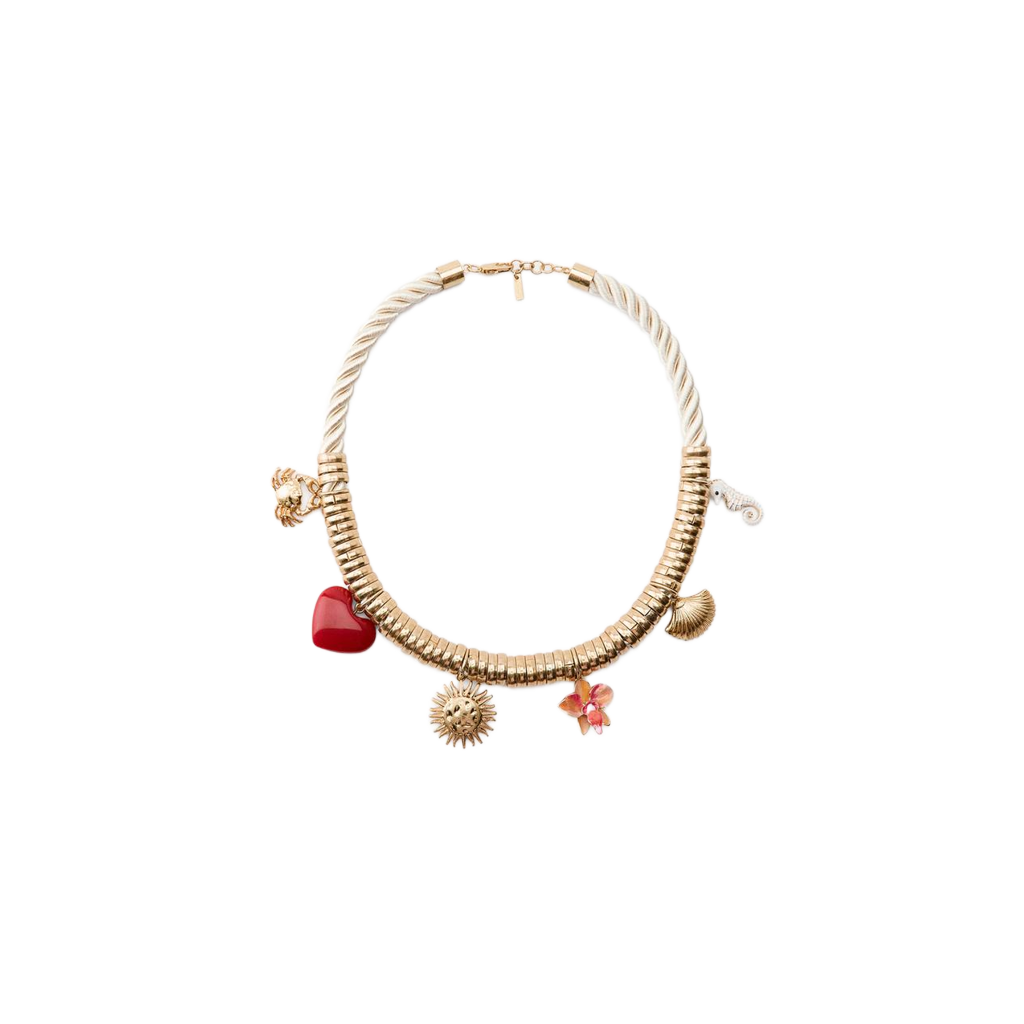 Deniz kabuğu, denizatı, yengeç, güneş, kalp ve çiçek figürleriyle tropik adaların huzur dolu ruhunu yansıtan bu tasarım, altın halkalı gövdesi ve kalın örgü zinciriyle hem şık hem de eğlenceli bir görünüm sunar. Canlı renk detayları, kolyeye yazın enerjisini katarken, zarif charm’lar her hareketinizde özgür bir ada esintisi yaratır. Island Bliss Kolye, sahil tatillerinden şehirdeki yaz akşamlarına kadar her stile neşeli ve göz alıcı bir dokunuş katar.