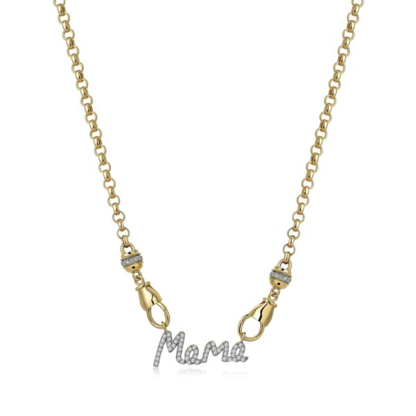 Gold zincirin zarafeti ile pırlanta ışıltısındaki “Mama” yazısını buluşturan bu tasarım, anneliğin sevgi dolu ve özel anlamını şık bir şekilde yansıtır. Modern ve duygusal tasarımı sayesinde hem günlük kullanımda hem de özel anlarda anlamlı bir aksesuar olarak öne çıkar. Mama Bliss Kolye, sevgiyle bağ kurulan en değerli kişiye adanmış, zarif ve kalıcı bir hatıradır.