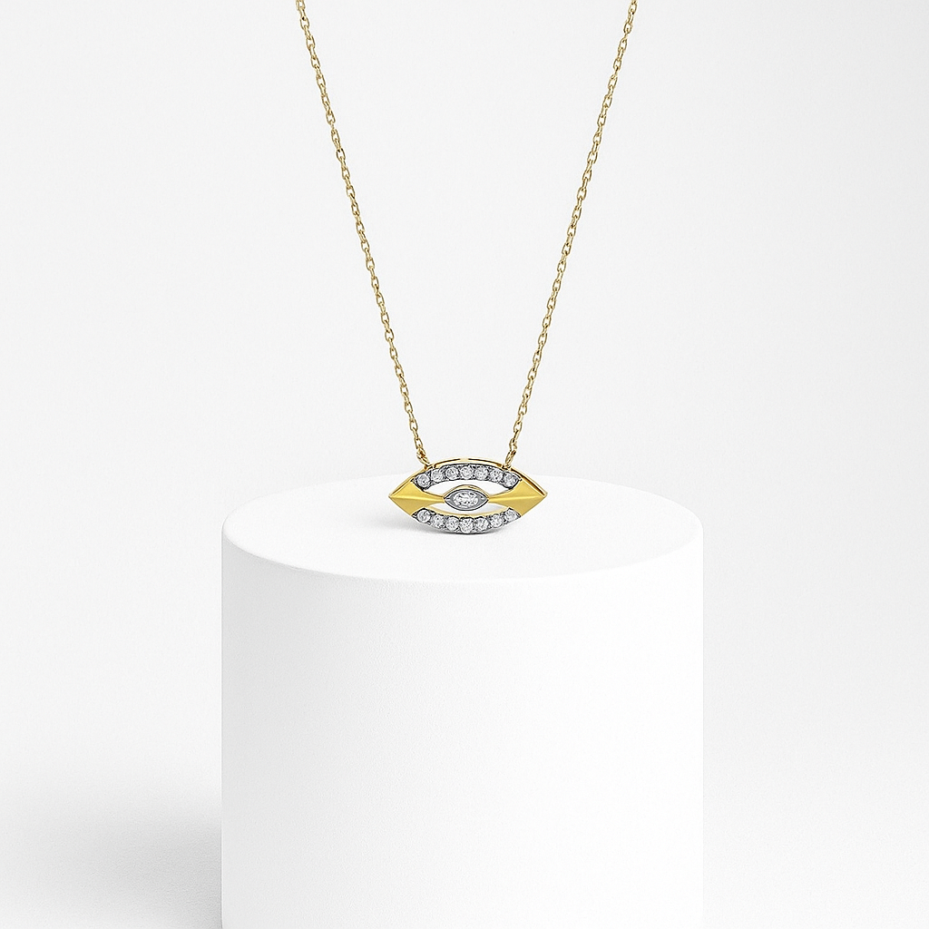 Markis Kolye, şıklığı ve zarafeti bir arada sunan modern bir tasarımdır. Göz figürü ile tasarlanmış bu kolye, dikkatlice yerleştirilmiş taşlarla çevrelenerek zarif bir ışıltı yaratır. Altın tonlarında zinciri ve sofistike görünümüyle, hem günlük kullanımda hem de özel anlarınızda sizi şıklığınızı tamamlayacak şekilde süsler. Anlamlı göz figürü, nazardan korunmayı simgeler ve bu kolyeye özel bir anlam katar. Markis Kolye, hem kendinizi şımartmak hem de sevdiklerinize anlamlı bir hediye sunmak için mükemmel bir tercihtir.