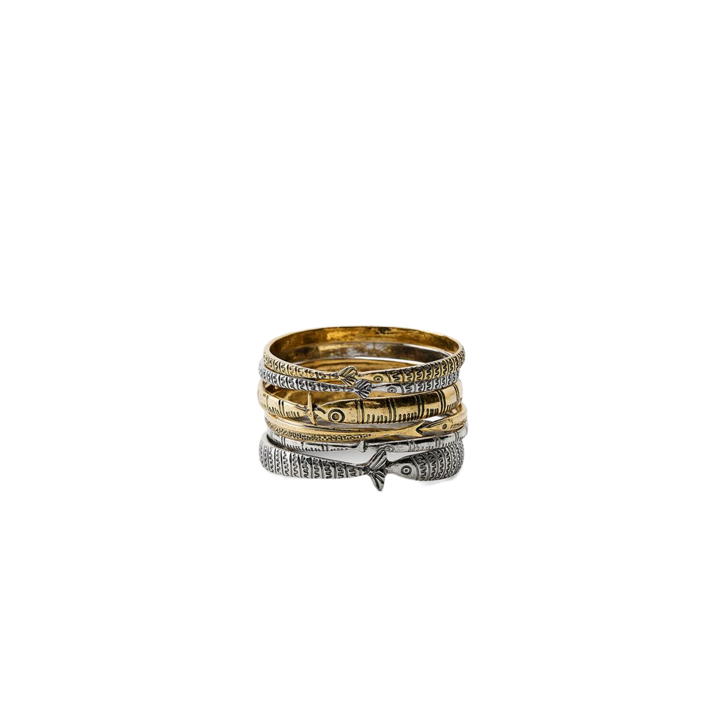 Altın ve gümüş tonlarının bir arada kullanıldığı, balık figürleriyle denizcilik ruhunu yansıtan bu tasarım, el işçiliği detaylarıyla dikkat çeker. Denizden ilham alan formu, bileğinizde hem otantik hem de karakterli bir duruş sergiler. Sailor’s Catch Kelepçe, deniz tutkusunu ve özgür ruhu stiline yansıtmak isteyenler için mükemmel bir seçimdir.