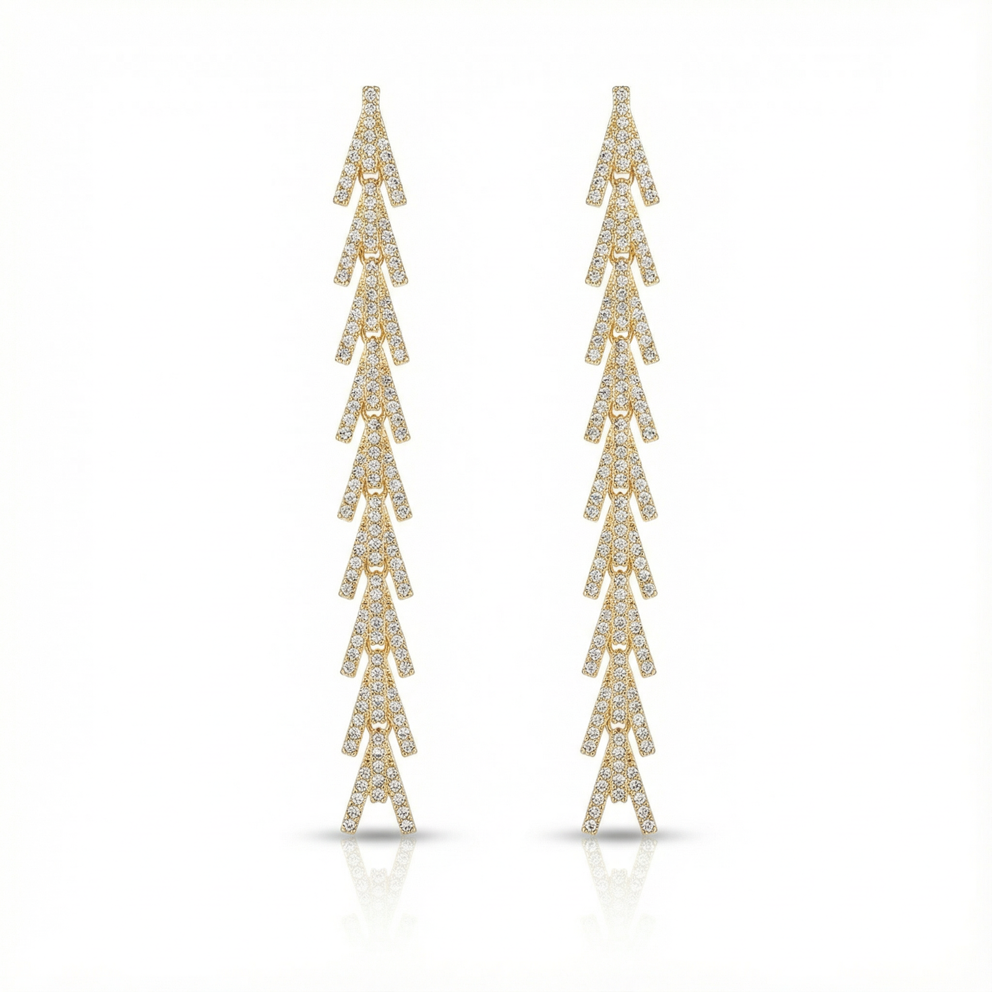 A Celestial Intersection of Light The Solstice Halo Studs capture the profound moment where celestial paths cross. Each earring features a sleek, high-polish golden crescent that acts as a structural anchor, elegantly interlocking with a radiant arc of marquise-cut crystals. The open-center silhouette creates a sense of weightless luxury, allowing the stones to appear as if they are floating in a starlit orbit. Designed for the modern minimalist with a penchant for cosmic storytelling, these studs offer a sophisticated front-facing brilliance that transitions seamlessly from day to evening.